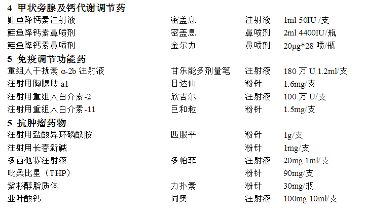 冷藏藥品目錄介紹