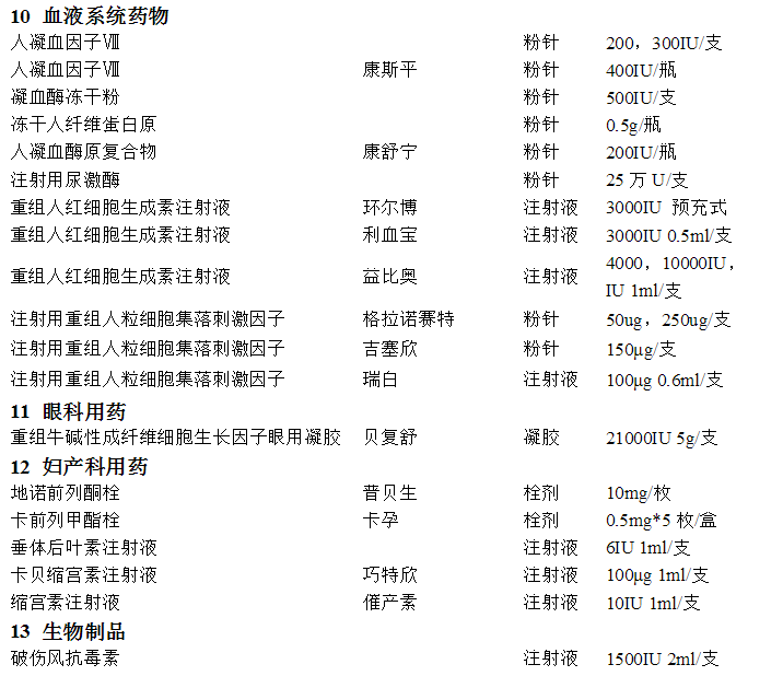 硝酸一葉秋堿注射液(H)       注射用兩性霉素B脂質體(H) 注射用尿激酶(H)              巴曲酶注射液(H)